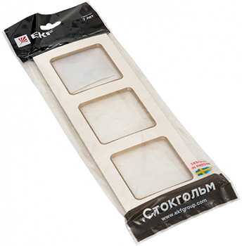 Рамка трехпостовая EKF EАM-G-302-20 "Стокгольм" (IP20), белый / шампань