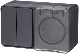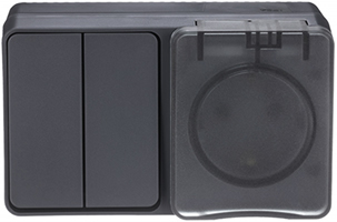 | Тип изделия | блок: выключатель 2х1-полюсный + розетка силовая (штепсельная) с заземляющим контактом и защитными шторками |