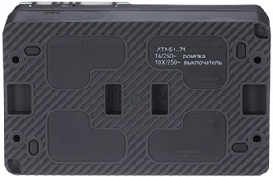 Блок Schneider Electric ATN544074 AtlasDesign Profi54 (выключатель 2-клавишный 10 А + розетка 1-местная 16 А с заземлением, шторками и защитной крышкой) открытой установки, антрацит