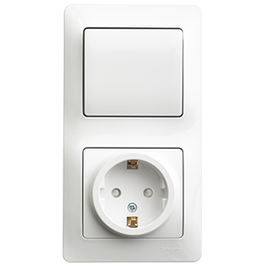 | Тип изделия | блок комбинированный: розетка с заземляющими контактами и защитными шторками + выключатель |