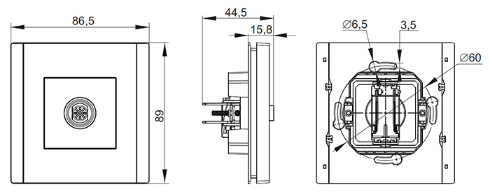 | Исполнение | механизм с суппортом и лицевой панелью, с боковыми заглушками |