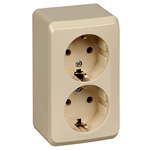 Розетка двухместная Schneider Electric PA16-007K "Этюд" (16 А, IP20) открытой установки, с заземлением, кремовый