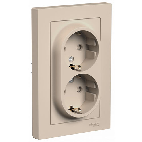 Розетка двухместная Systeme Electric ATN001226 AtlasDesign (16 А) скрытой установки, с заземлением и защитными шторками, песочный