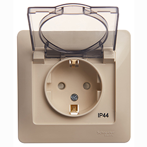 Розетка одноместная Schneider Electric GSL000248 Glossa (16 А, IP44, в сборе) с заземлением и защитными шторками, с крышкой, бежевый
