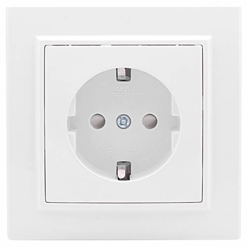 Розетка одноместная EKF ERR16-028-100 "Минск" (16 А, IP20) скрытой установки, с заземлением и защитными шторками, белый