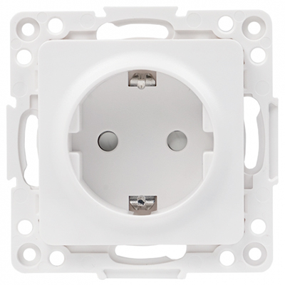 Розетка одноместная EKF EYR16-028-10 "Стокгольм" (16 А, IP20) скрытой установки, с заземлением и защитными шторками, белый