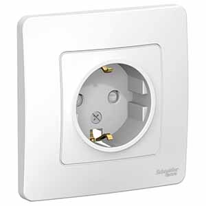 Розетка одноместная Schneider Electric BLNRS001111 Blanca (16 А, IP20) с заземлением и защитными шторками, скрытой установки, белый