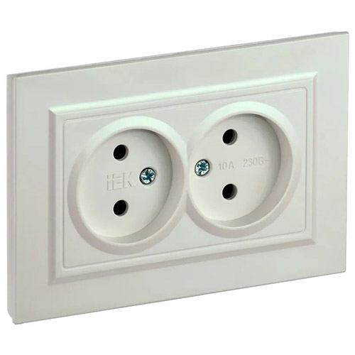 Розетка двухместная IEK РС12-2-БрЖ Brite (10 А, IP20) скрытой установки, в сборе, жемчуг