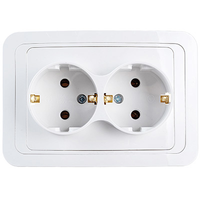 Розетка двухместная IN HOME 2128 Classico (16 А, IP20) скрытой установки, с заземлением, белый