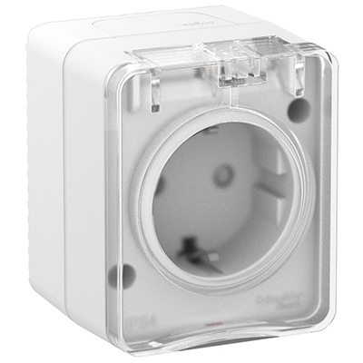 Розетка одноместная Schneider Electric ATN540145 AtlasDesign Profi54 (16 А, IP54) открытой установки, с заземлением, шторками и защитной крышкой, белый