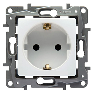 Розетка одноместная Legrand Etika 672221 (2К+З, винтовые клеммы) c заземлением, белый
