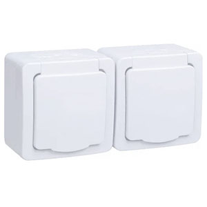 Розетка двухместная горизонтальная IEK РСб22-3-ГПБб "Гермес Plus" (IP54) с заземлением, с крышками, открытой установки, белый