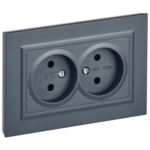 Розетка двухместная IEK РС12-2-БрГ Brite (10 А, IP20) скрытой установки, в сборе, графит