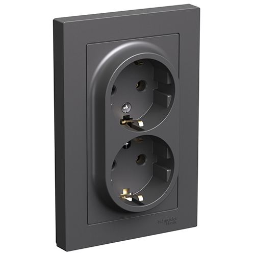 Розетка двухместная Systeme Electric ATN001424 AtlasDesign (16 А) скрытой установки, с заземлением, в сборе, базальт