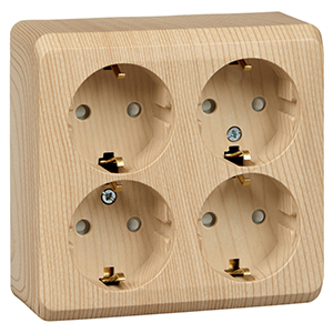 Розетка четырехместная Schneider Electric PA16-208D "Этюд" (16 А, IP20) открытой установки, с заземлением и защитными шторками, сосна