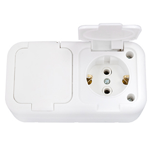 Розетка двухместная Bylectrica 2РА 10-213 БЗ (IP44) с заземлением, с крышками, открытой установки, белый