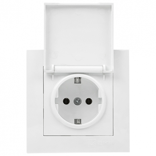 Розетка одноместная EKF EWR10-124-10 "Валенсия" (16 А, IP44) скрытой установки, с заземлением и шторками, с защитной крышкой, белый