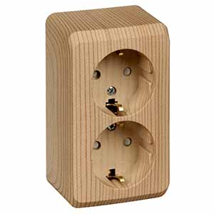 Розетка двухместная Schneider Electric PA16-008D "Этюд" (16 А, IP20) открытой установки, с заземлением и защитными шторками, сосна