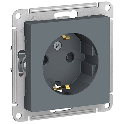 Розетка одноместная Schneider Electric ATN000745 AtlasDesign (16 А) скрытой установки, с заземлением, с защитными шторками, грифель