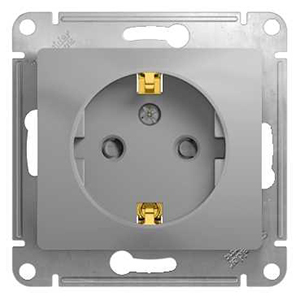 Розетка одноместная Schneider Electric GSL000345 Glossa (16 А, механизм) с заземлением и защитными шторками, скрытой установки, алюминий