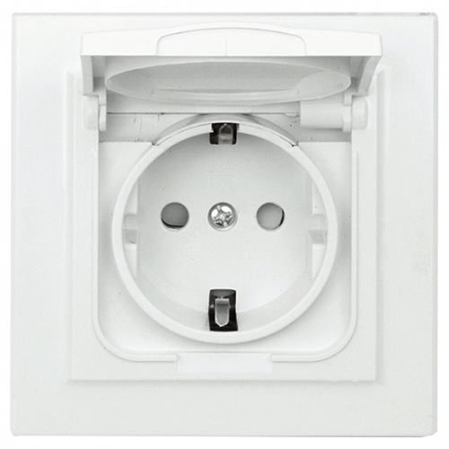 Розетка одноместная EKF ERR16-029-100-44 "Минск" (16 А, IP44) скрытой установки, с заземлением и шторками, с защитной крышкой, белый