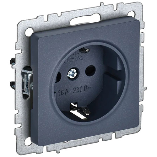 Розетка одноместная IEK РС11-1-0-БрМ Brite (16 А, IP20) скрытой установки, с заземлением, маренго