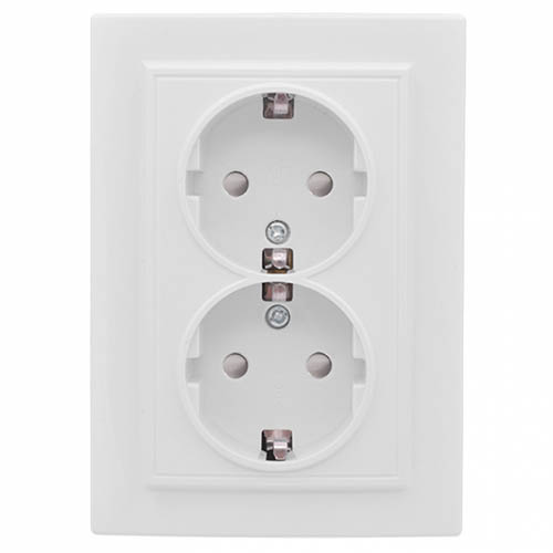 Розетка двухместная EKF ERR16-128-100 "Минск" (16 А, IP20) скрытой установки, с заземлением и защитными шторками, белый