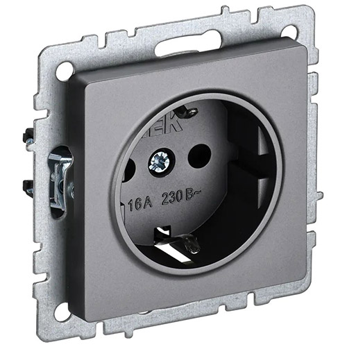 Розетка одноместная IEK РС11-1-0-БрС Brite (16 А, IP20) скрытой установки, с заземлением, сталь