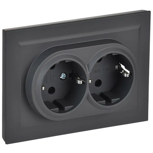 Розетка двухместная IEK РС12-3-БрГ Brite (16 А, IP20) скрытой установки, с заземлением, в сборе, графит