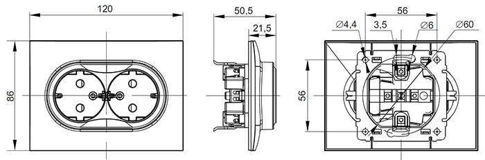 | Тип изделия | розетка силовая с заземляющими контактами, с защитными шторками |