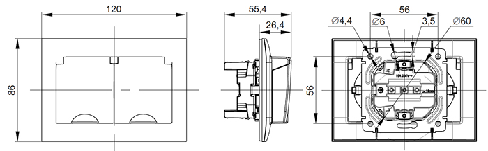 | Тип изделия | розетка силовая с заземляющими контактами и защитными шторками |