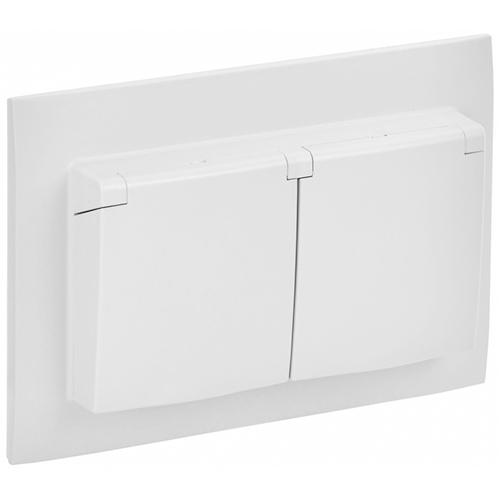 Розетка двухместная IEK SK-R12W Skandy (16 А, IP44) скрытой установки, с заземлением и шторками, с крышкой, в сборе, арктический белый