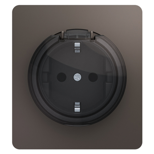 Розетка одноместная Kranz KR-78-0702-2 Miele Round (16 А, IP20) с заземлением и защитными шторками, с крышкой, скрытой установки, титан