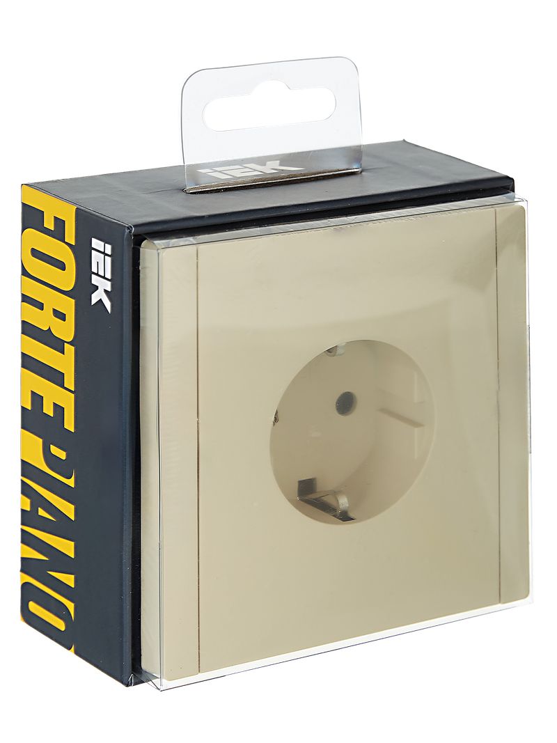 Розетка одноместная IEK FP415 Forte&Piano (16 А, IP20) скрытой установки, с заземлением и защитными шторками, ваниль