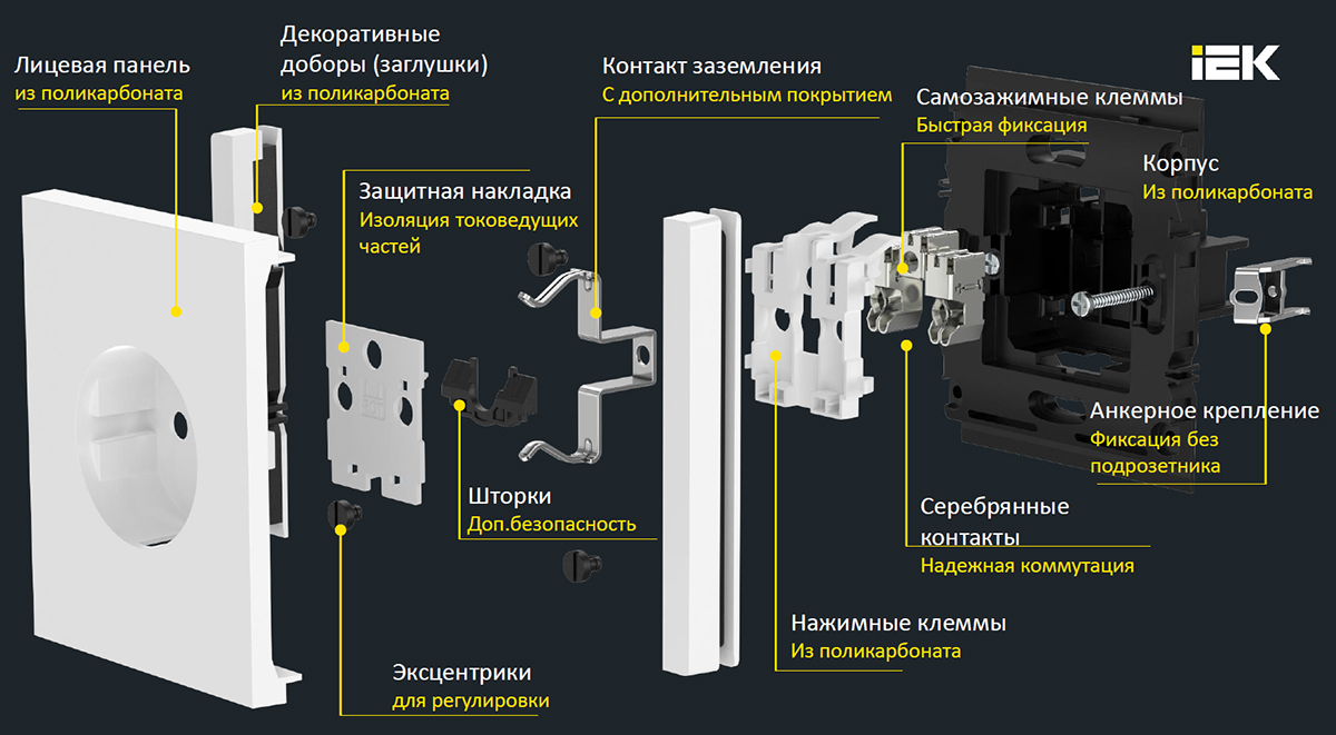 Коллекция безрамочных розеток и выключателей Forte&Piano от IEK не имеет аналогов в мире и дает возможность легко комбинировать изделия, создавая изящные бесшовные композиции.