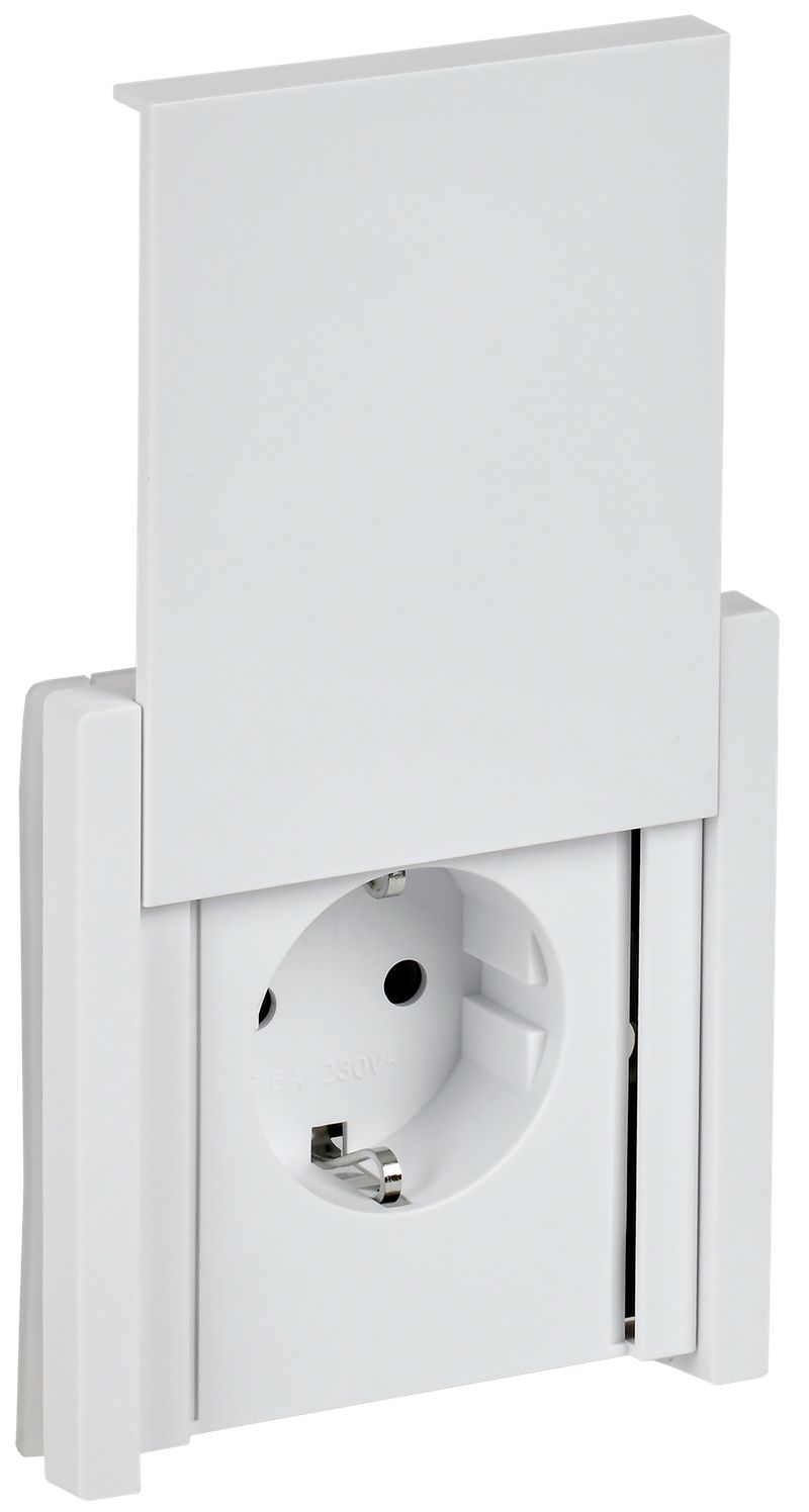 Розетка одноместная IEK FP219 Forte&Piano (16 А, IP44, безвинтовые зажимы) скрытой установки, с заземлением и шторками, с крышкой, белый