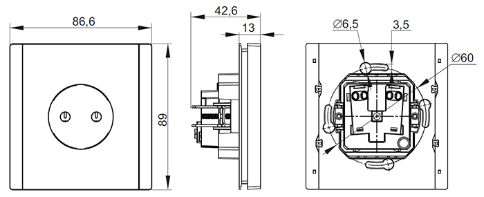 | Тип изделия | розетка без заземляющего контакта, без защитных шторок |