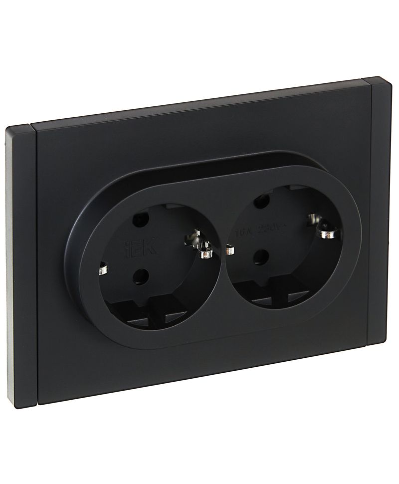 Розетка двухместная IEK FP123 Forte&Piano (16 А, IP20, безвинтовые зажимы) скрытой установки, с заземлением и защитными шторками, черный