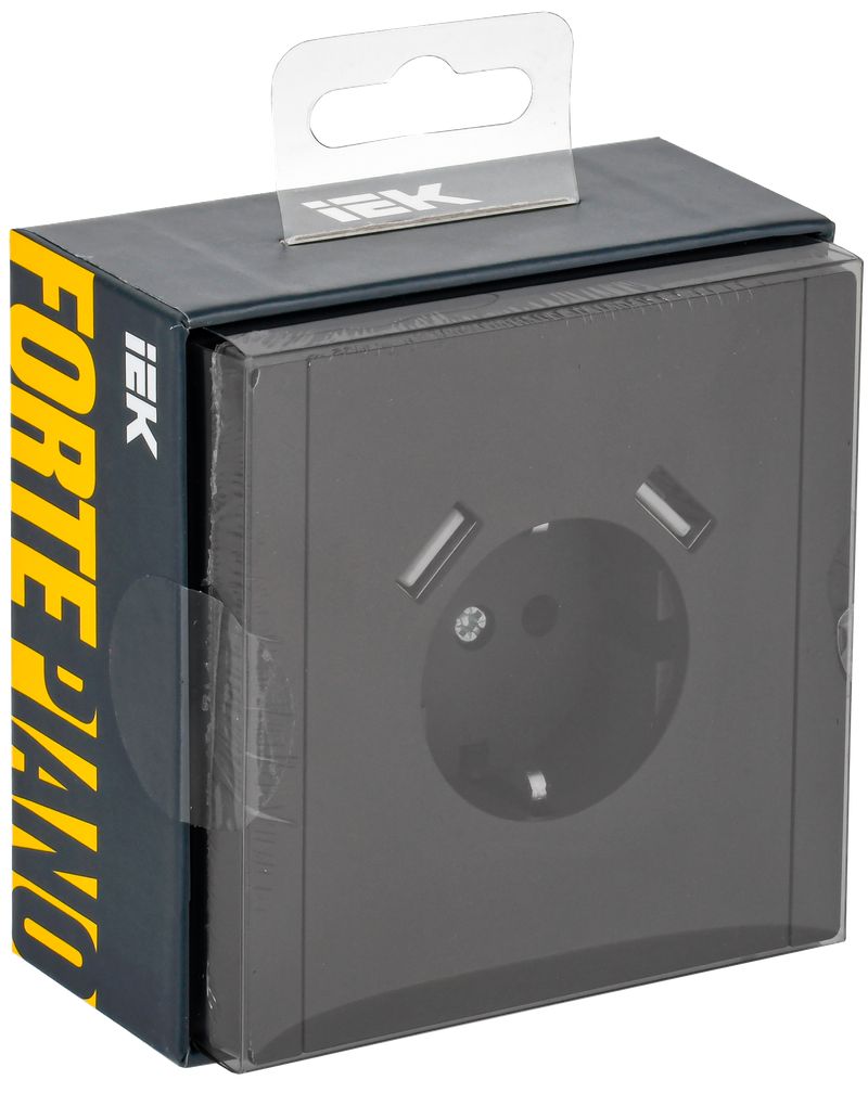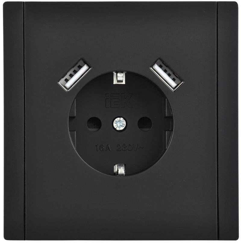 Розетка одноместная IEK FP145 Forte&Piano (16 А, IP20) скрытой установки, с заземлением и шторками, с разъемами USB A+A (3,1 А), черный