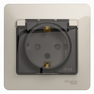 Розетка одноместная Schneider Electric GSL000948 Glossa (16 А, IP44, в сборе) с заземлением и защитными шторками, с крышкой, молочный