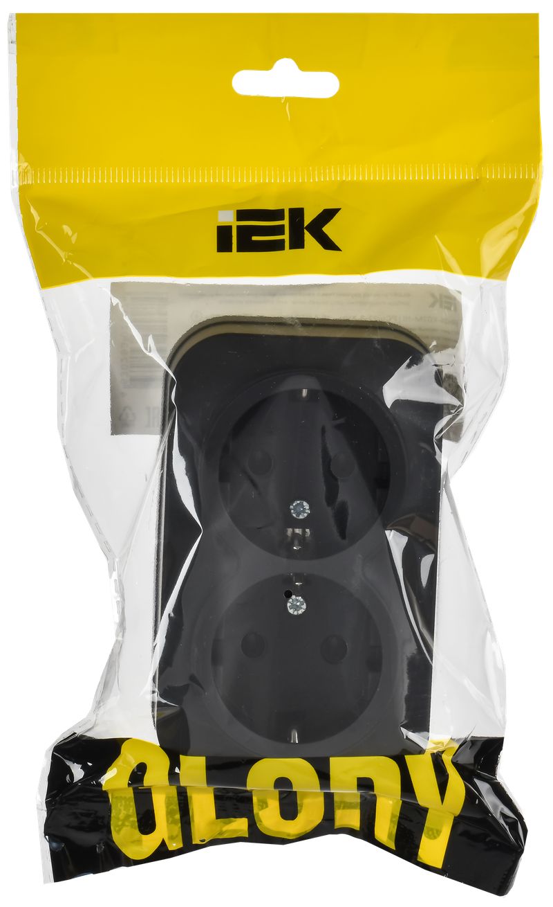 Розетка двухместная IEK РС22-3-ХЧм Glory (16 А, IP20) открытой установки, с заземлением, черный матовый