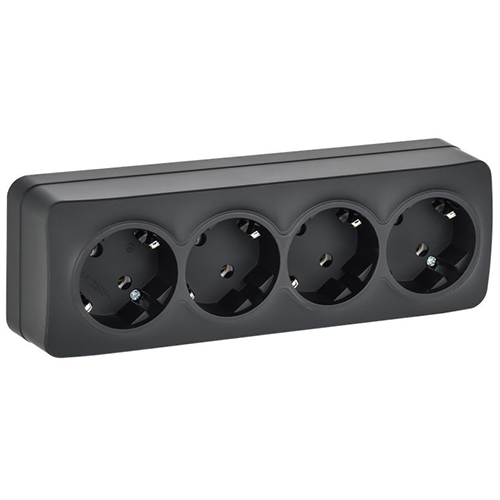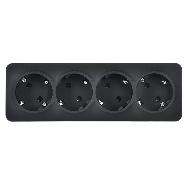 Розетка четырехместная IEK РС24-3-ХЧм Glory (16 А, IP20) открытой установки, с заземлением, черный матовый