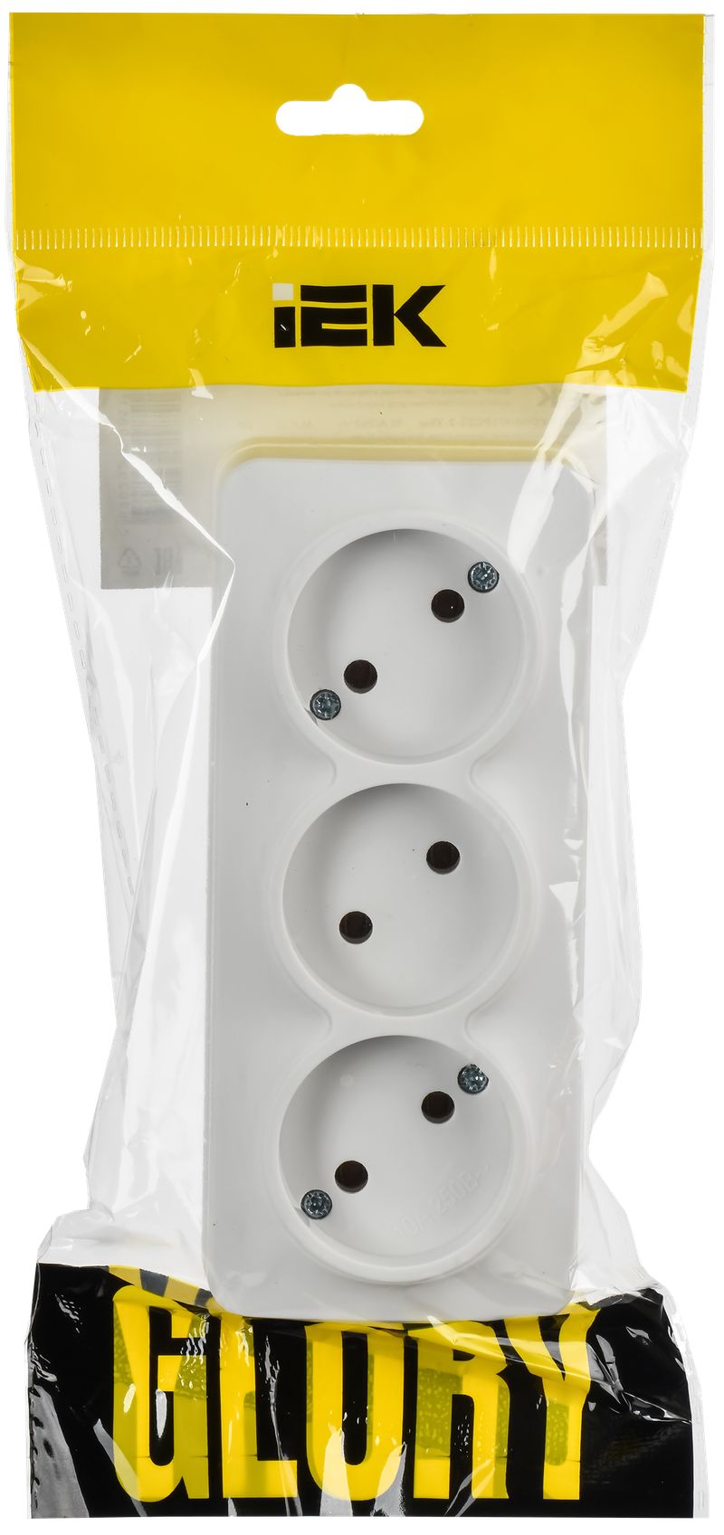 Розетка трехместная IEK РС23-2-ХБм Glory (10 А, IP20) открытой установки, белый матовый
