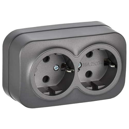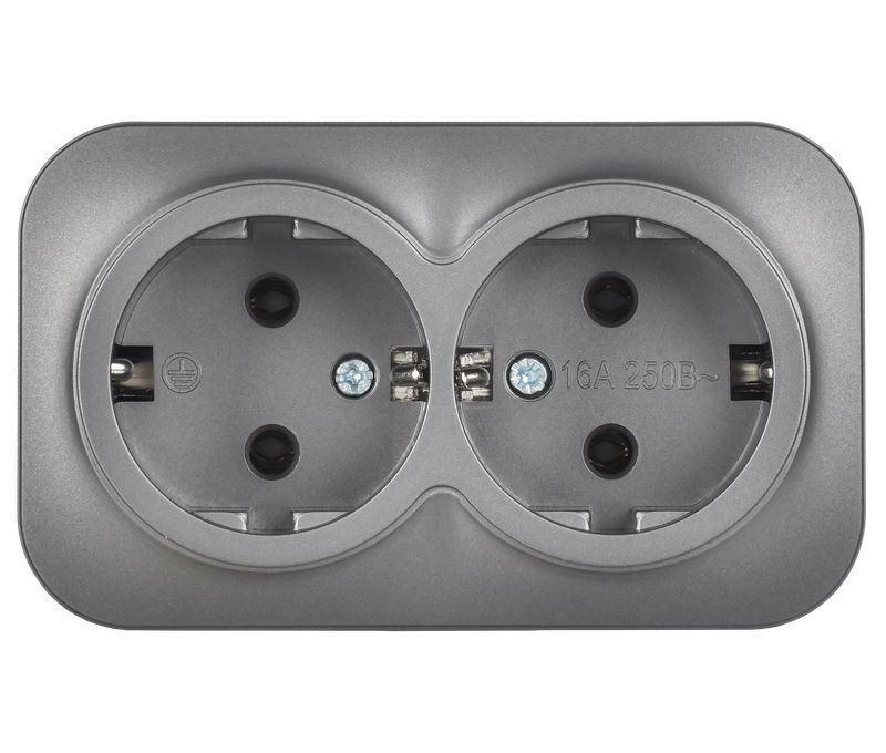 Розетка двухместная IEK РС22-3-ХСм Glory (16 А, IP20) открытой установки, с заземлением, сталь матовый
