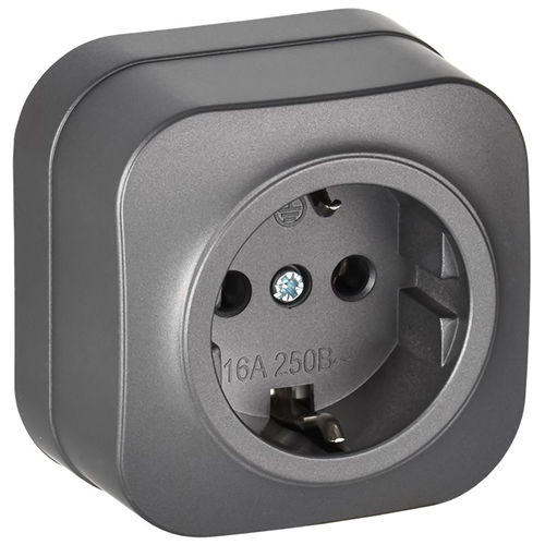 Розетка одноместная IEK РС20-3-ХСм Glory (16 А, IP20) открытой установки, с заземлением, сталь матовый