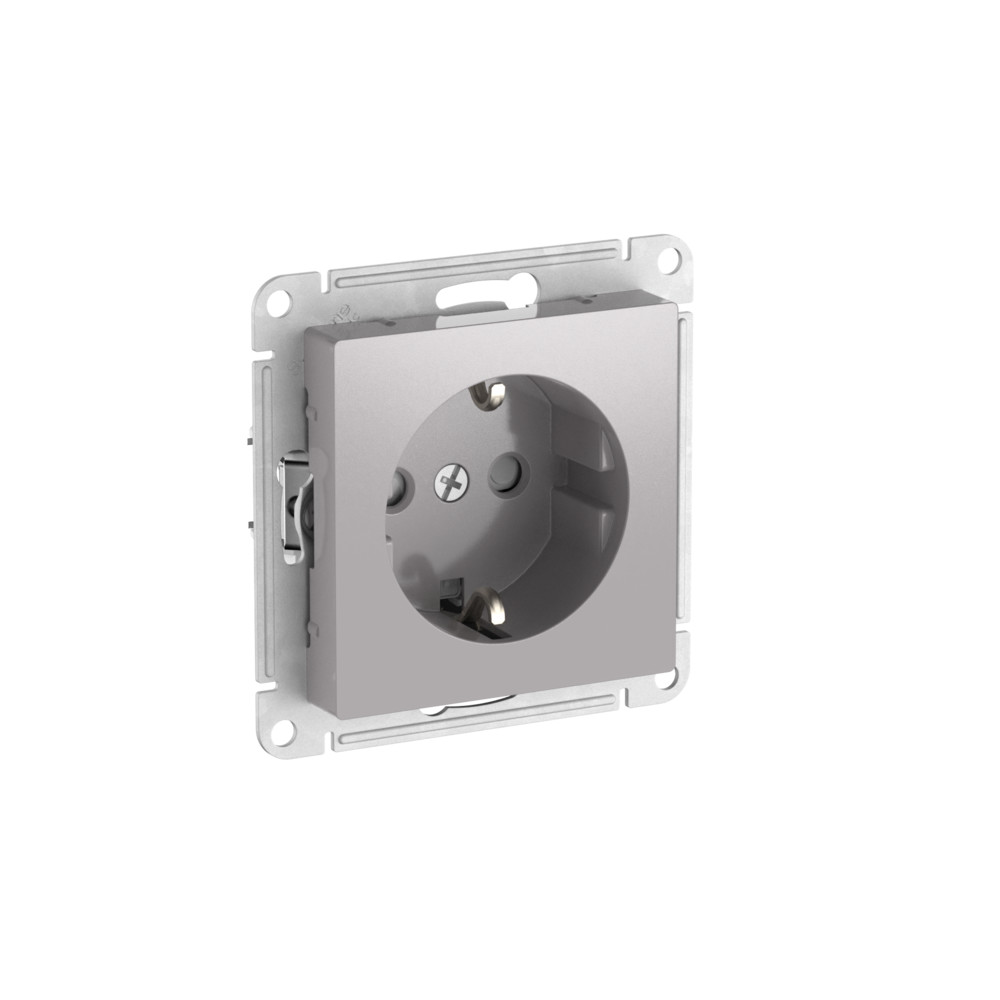 Механизм с быстрозажимными клеммами Systeme Electric (ранее Schneider Electric) серии AtlasDesign в цвете алюминий розетки одинарной с заземлением и со штороками подходит для сетей 250 В, на ток 16 А. С помощью новых быстрозажимных клемм монтаж розеток и выключателей стал намного быстрее. Теперь подключение не требует использования отвертки.