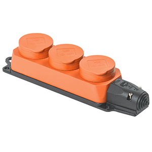 Колодка трехместная РБ33-1-0м IEK "Омега" (16 А, IP44, каучук) с заземлением, с защитными крышками, оранжевый