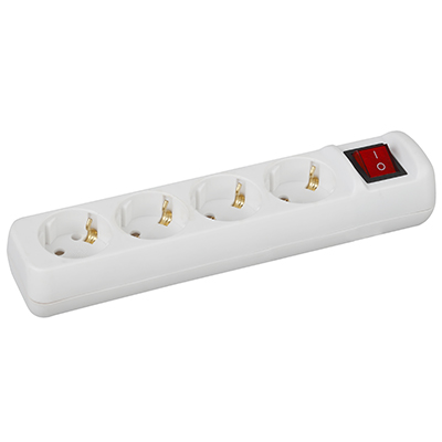 Колодка электрическая 4-местная KХ-4es "Эра" (16 А, IP20) с заземлением, с выключателем, белый
