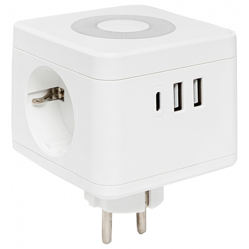 Разветвитель двухместный EKF UBA-CUB-T2-TC "Куб" (16 А) с заземлением, 2 х USB-А (2,4 А) + 1 х USB Type C, с ночником, белый