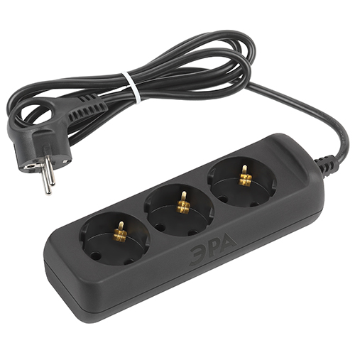 Удлинитель трехместный 1,5 м "Эра" UX-3e-1,5m-B (10 А, ПВС 3 x 0,75 кв.мм) с заземлением, черный